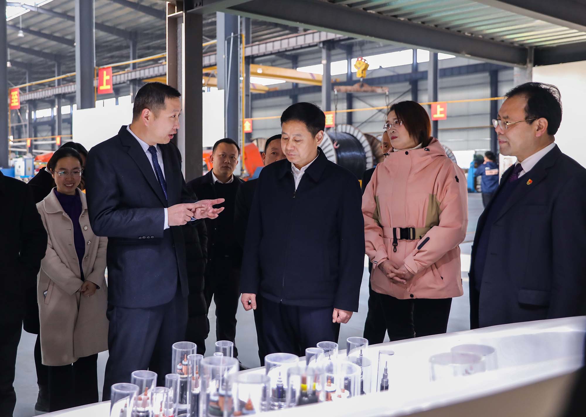 2021年1月4日下午,永州市委書記嚴(yán)華帶領(lǐng)部分在永的省人大代表來到來到永州市經(jīng)開區(qū)調(diào)研營商環(huán)境工作,深入湖南三湘電線電纜等企業(yè)參觀視察。永州市經(jīng)開區(qū)黨委書記高守凱,永州市經(jīng)開區(qū)管委會(huì)主任李瑛等參加調(diào)研,湖南三湘電纜董事長申旺等公司領(lǐng)導(dǎo)陪同調(diào)研并介紹相關(guān)情況。