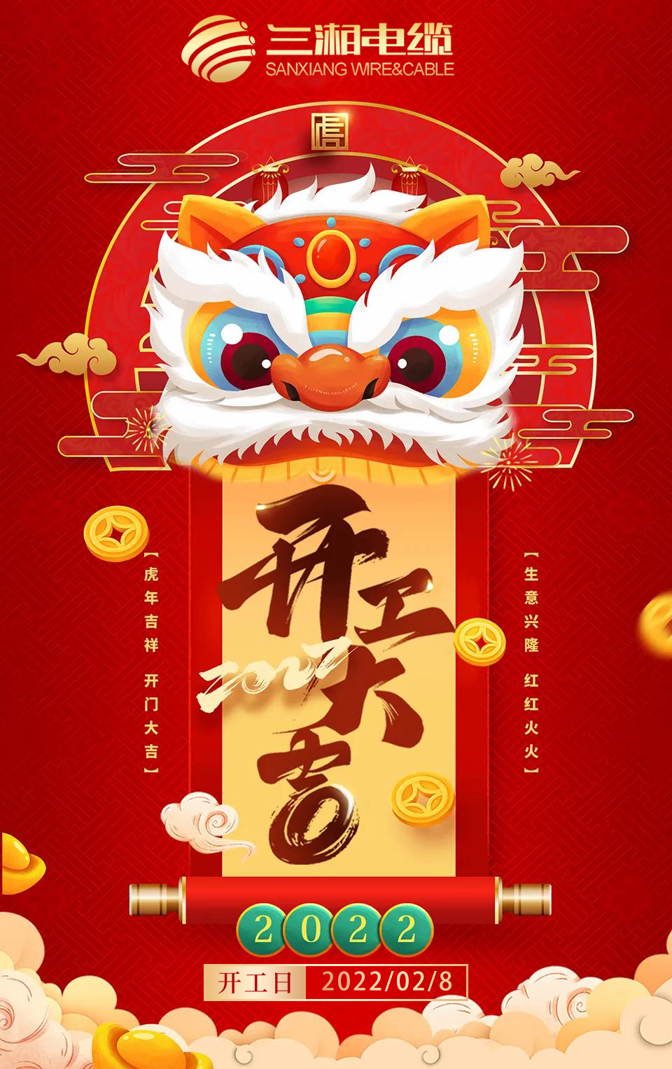 春節(jié)休假后,我公司全體員工將于2022年2月8日(農(nóng)歷正月初八)起正式營業(yè)上班,全體員工將以全新的工作面貌和飽滿的熱情投入到新一年的工作當(dāng)中去,以更優(yōu)質(zhì)的服務(wù)回饋新老客戶! 在此祝大家前程似錦,祝公司蒸蒸日上??!