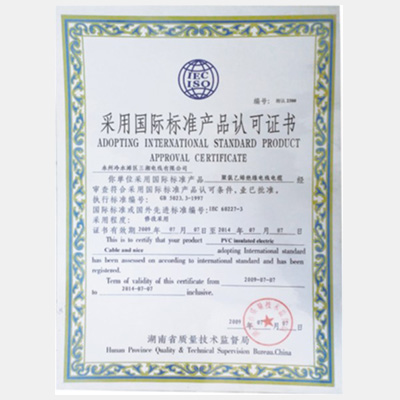 采用國際標(biāo)準(zhǔn)產(chǎn)品標(biāo)志證書